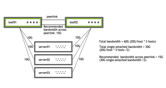 - There must be a direct connection between the two peer switches configured with MLAG. This is typically a bond for increased reliability and bandwidth.