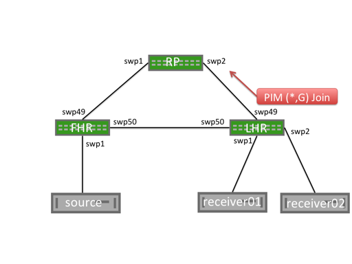 As the unencapsulated multicast packet travels down the (*,G) tree towards the interested receivers, at the same time, the RP sends a PIM (S,G) join towards the FHR. This builds an (S,G) state on each multicast router between the RP and FHR.