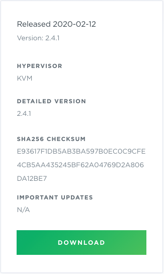 (Note: This must be an SSD; use of other storage options can lead to system instability and are not supported.)Network interface speed 1 Gb NIC Hypervisor KVM/QCOW (QEMU Copy on Write) image for servers running CentOS, Ubuntu and RedHat operating systems -