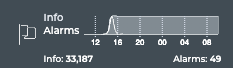 To view the summary with the small Info card, simply open the card. This card gives you a high-level view in a condensed visual, including the number and distribution of the info events along with the alarms that have occurred during the same time period.