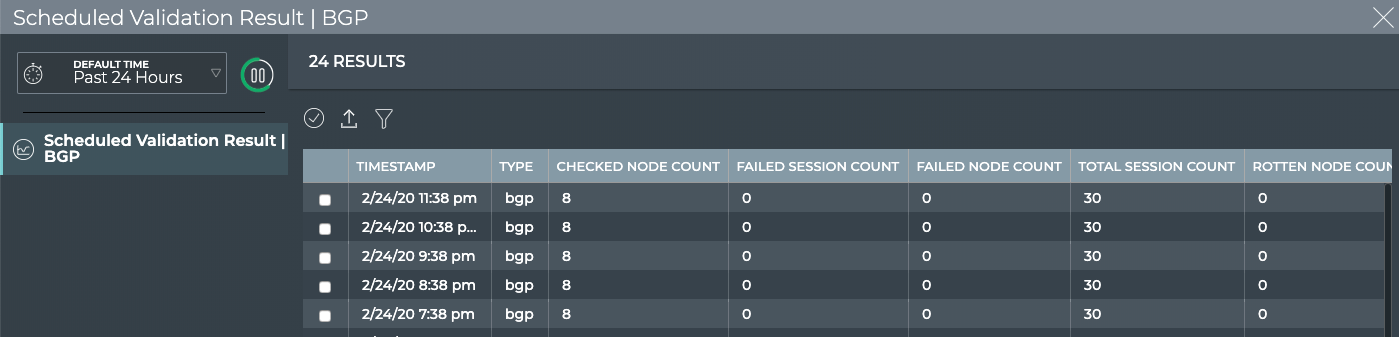 | Scheduled Validation Result | <network protocol or service> | Displays all unscheduled validation results. By default, the results list is sorted by timestamp. This tab provides the following additional data about each result: