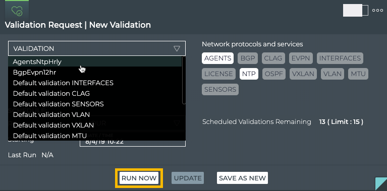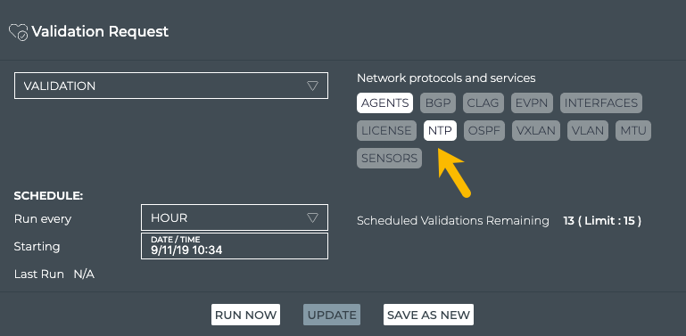 Select the protocols and/or services you want to include in the validation. In this example we have chosen the Agents and NTP services.
