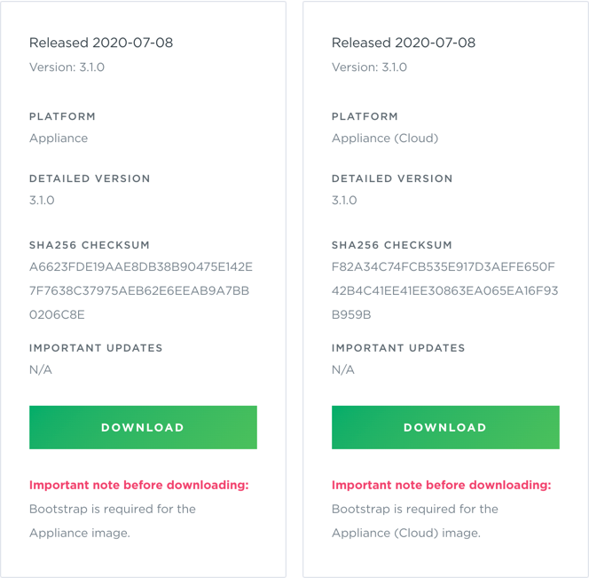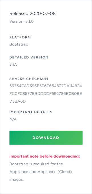 Select Bootstrap from the Hypervisor/Platform list. Note that the bootstrap file is the same for both appliances.
