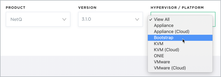 Select Appliance for the NetQ On-premises Appliance or Appliance (Cloud) for the NetQ Cloud Appliance from the Hypervisor/Platform list.
