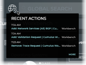 Found in the header, Recent Actions keeps track of every action you take on your workbench and then saves each action with a timestamp. This enables you to go back to a previous state or repeat an action.
