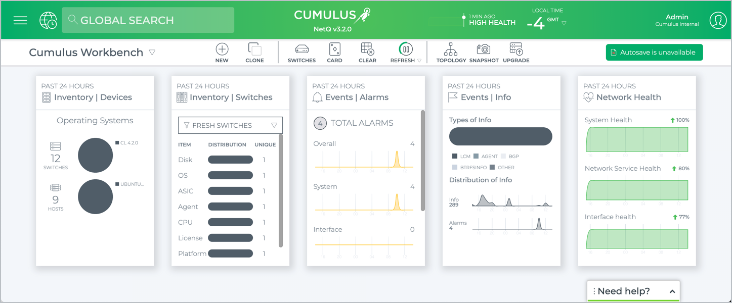 - Specify a home workbench: This tells NetQ to open with that workbench when you log in instead of the default Cumulus Workbench.