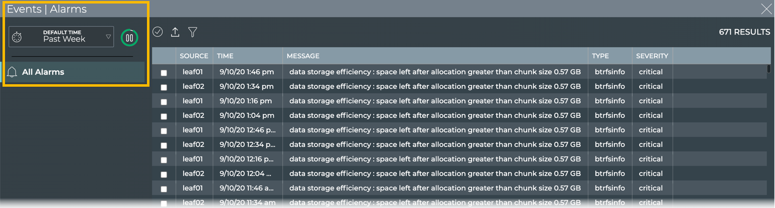 - Events|Alarms card: view critical events for 6 hours, 12 hours, 24 hours, a week, a month, or a quarter in the past