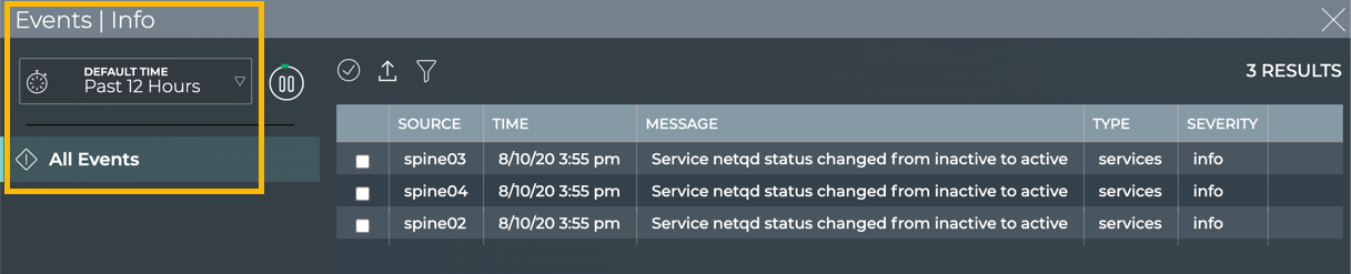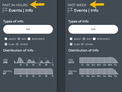 - Events|Info card: view non-critical events for 6 hours, 12 hours, 24 hours, a week, a month, or a quarter in the past