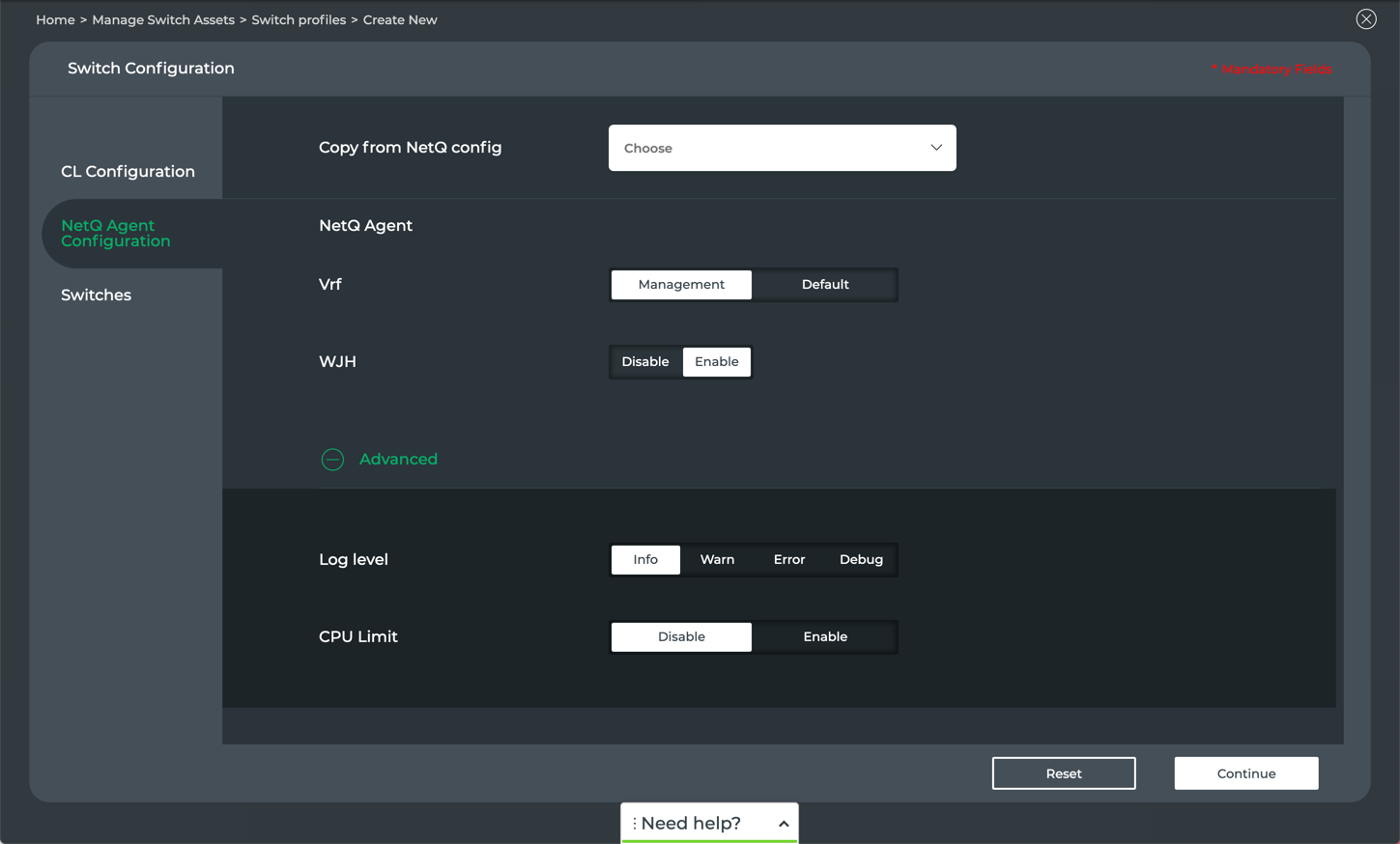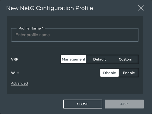 Select an existing NetQ Configuration profile or create a custom one.