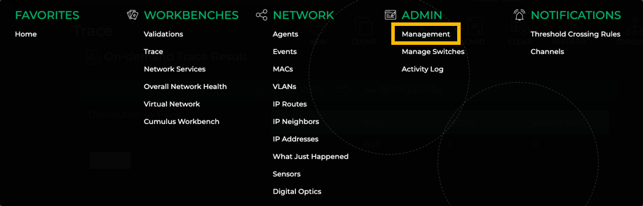 (Main Menu), select Management in the Admin column.
