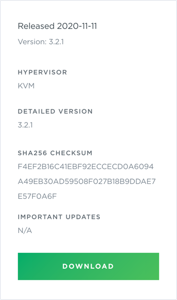 (Note: This must be an SSD; use of other storage options can lead to system instability and are not supported.)Network interface speed 1 Gb NIC Hypervisor KVM/QCOW (QEMU Copy on Write) image for servers running CentOS, Ubuntu and RedHat operating systems -