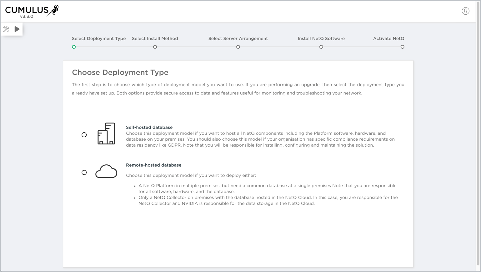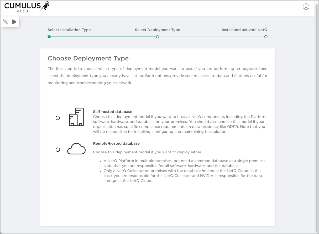 Choose the deployment model you want to use. Both options provide secure access to data and features useful for monitoring and troubleshooting your network.