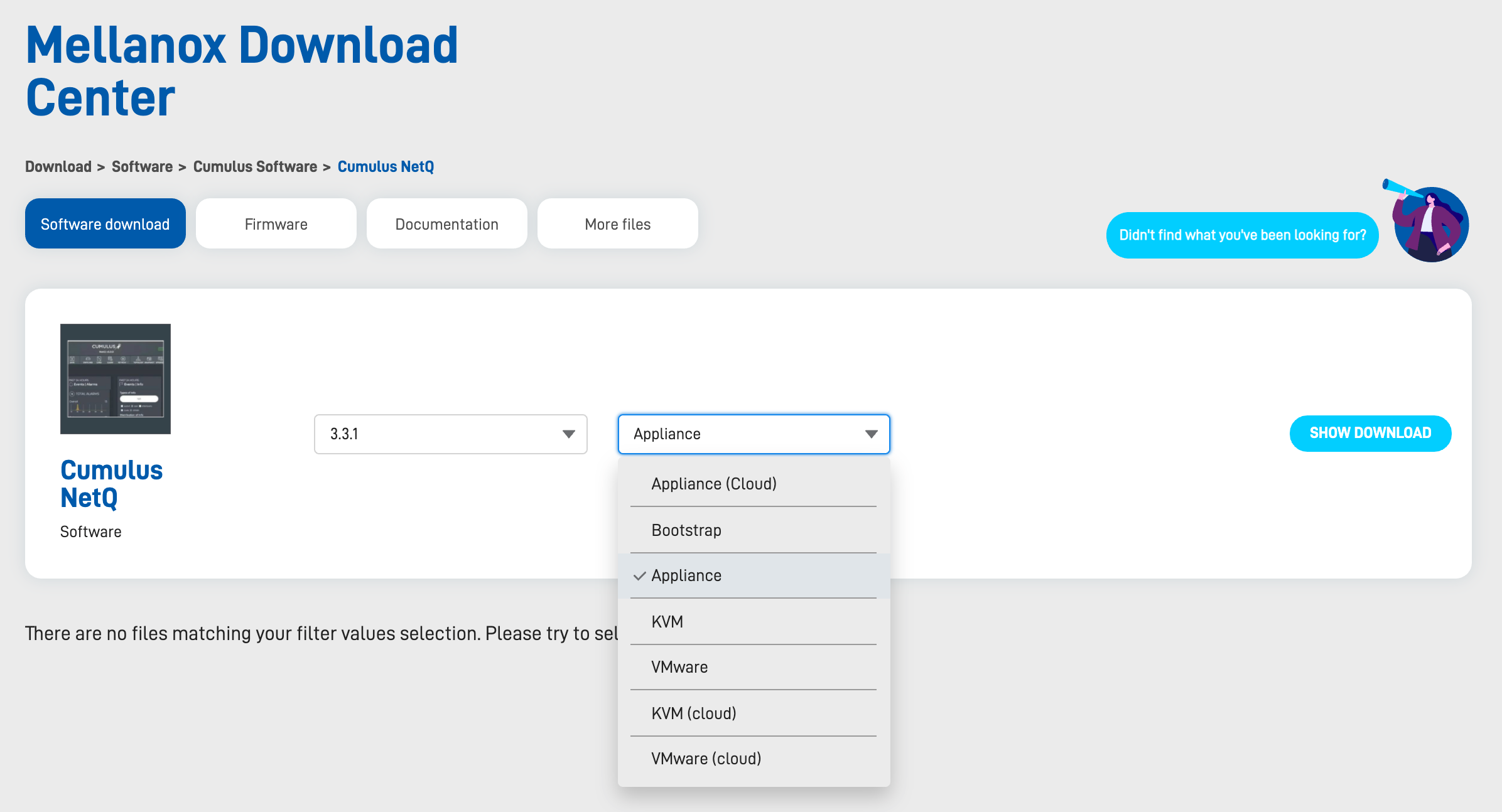 Ignore the Firmware, Documentation, and More files options as these do not apply to NetQ.