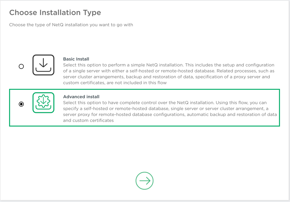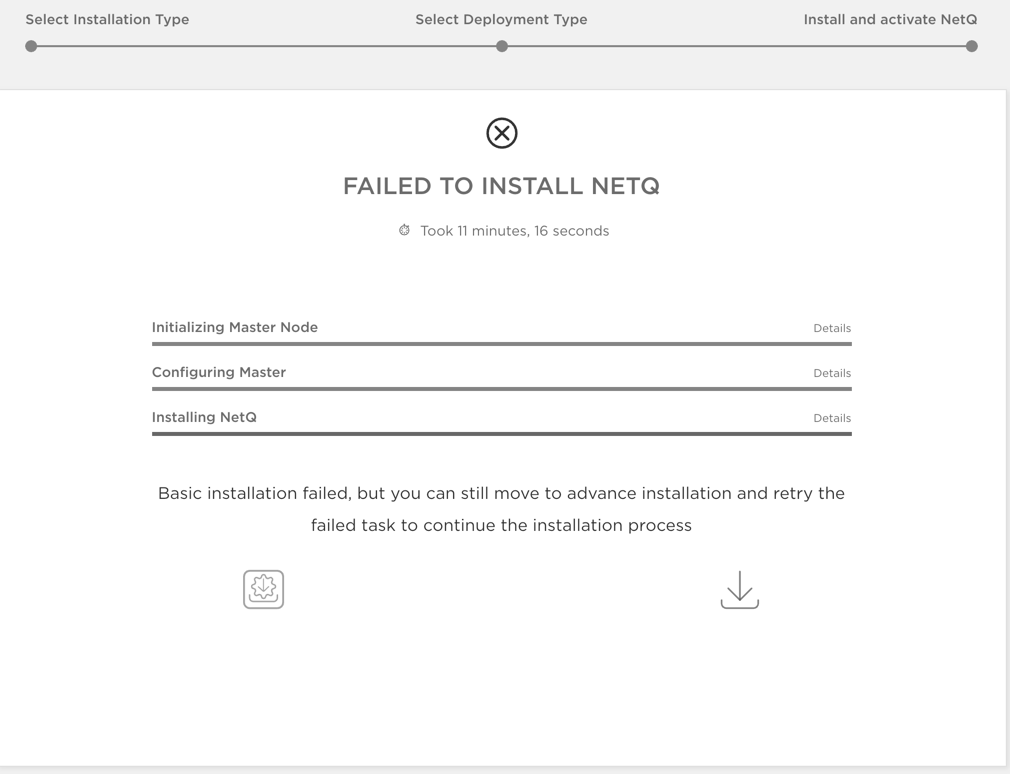netq boostrap resetandnetq bootstrap mastercommands, then reopen the Admin UI to start installation again. - Yes: click