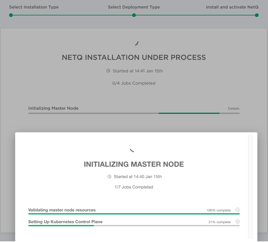 - Monitor the progress of the installation job. Click Details for a job to see more granular progress.