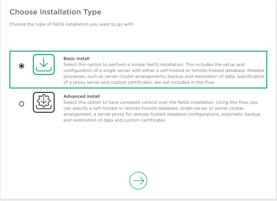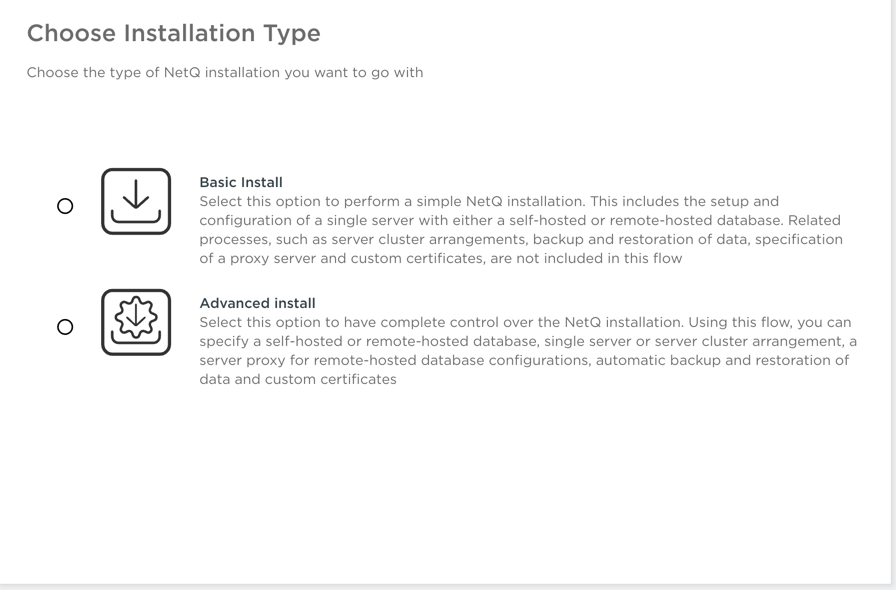You can install the NetQ software using the Admin UI, which you use for either a default basic installation or an advanced installation.