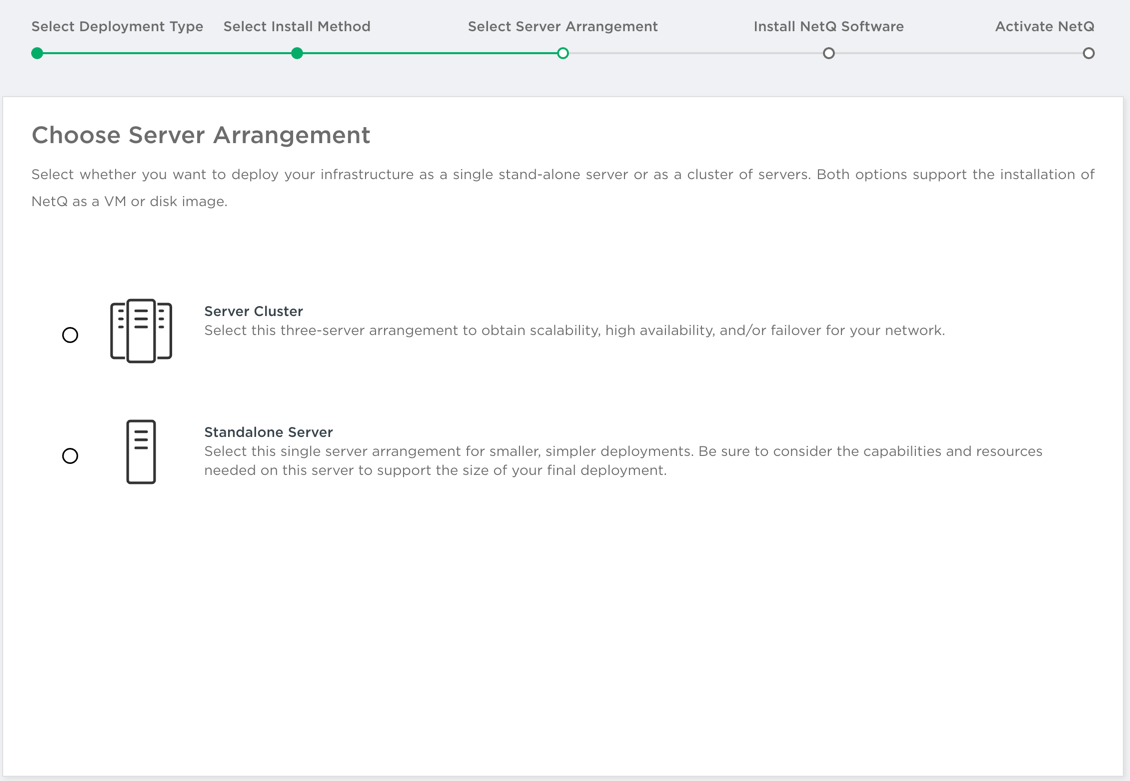 Select whether you want to deploy your infrastructure as a single stand-alone server or as a cluster of servers.