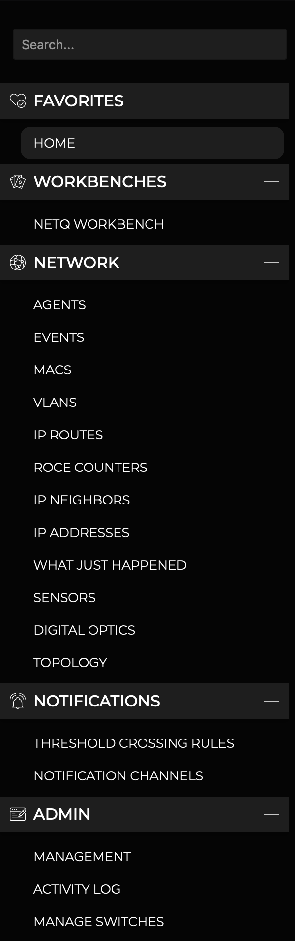 A workbench comprises a given set of cards. A pre-configured default workbench, NetQ Workbench, is available to get you started. You can create your own workbenches and add or remove cards to meet your particular needs. For more detail about managing your data using workbenches, refer to Focus Your Monitoring Using Workbenches.