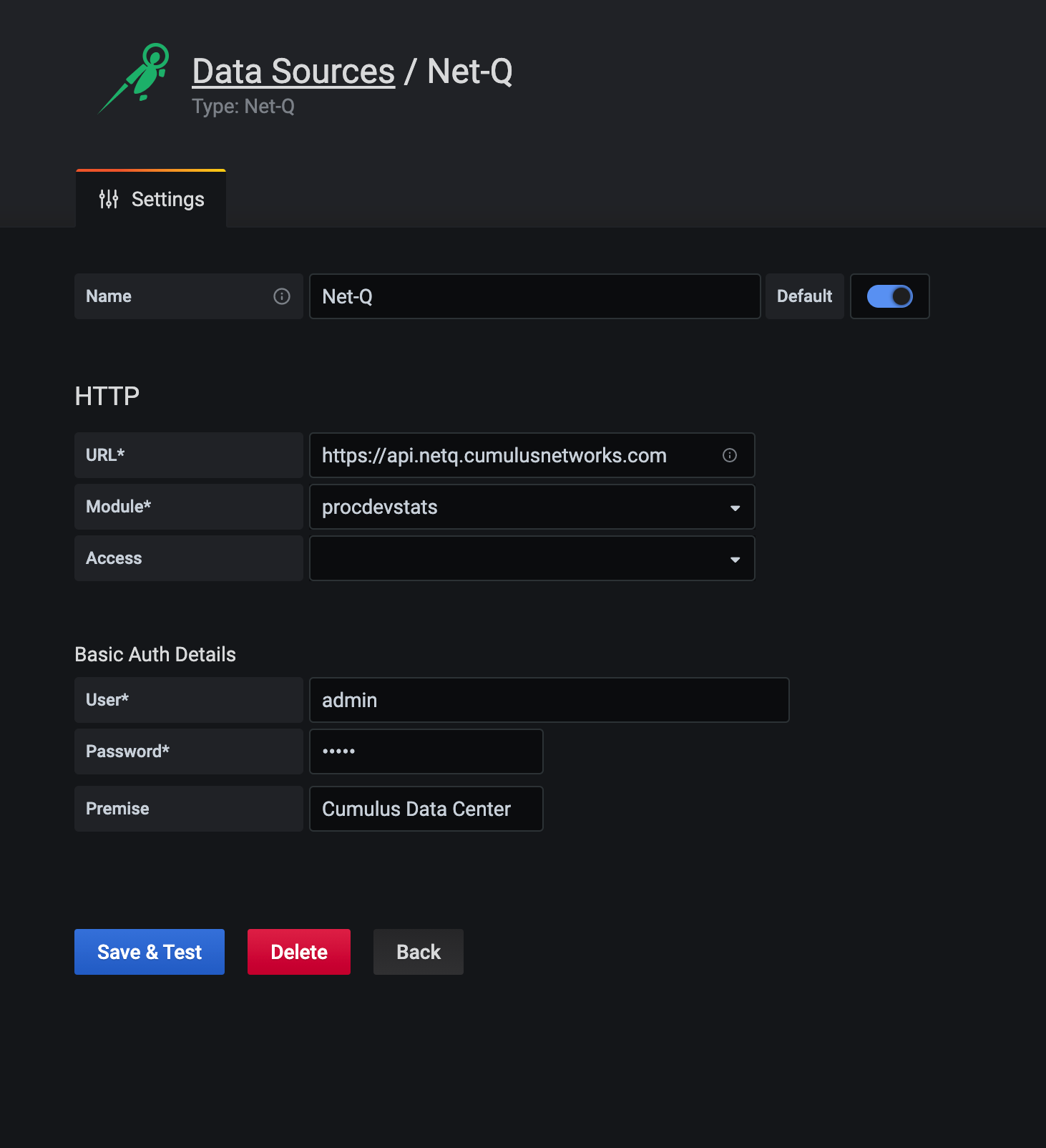 Now that you have the plugin installed, you need to configure access to the NetQ data source.