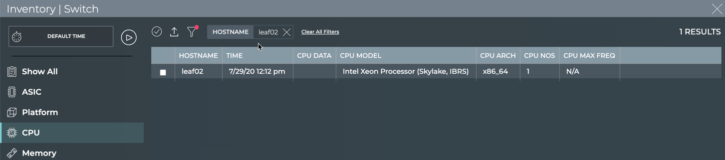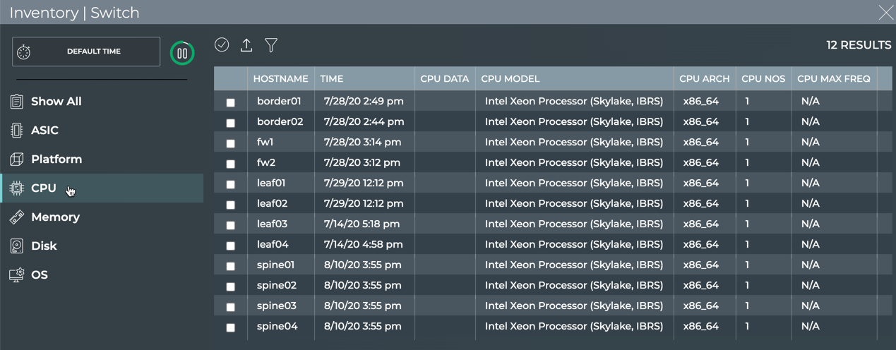 netq show inventory cpucommand: view CPU architecture, model, maximum operating frequency, and the number of cores on a switch
