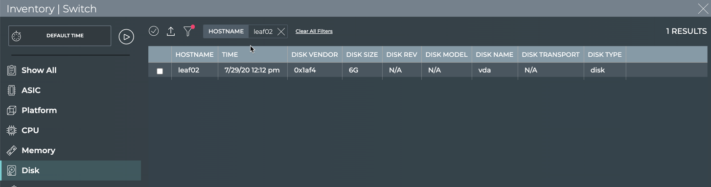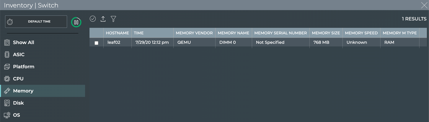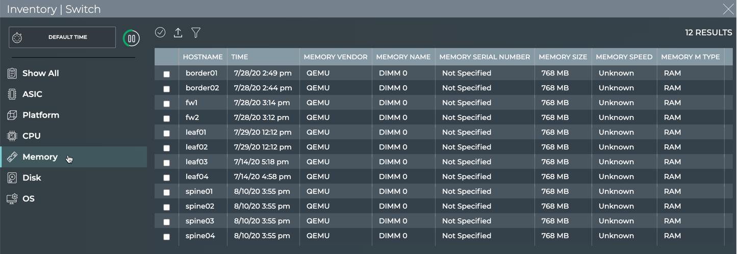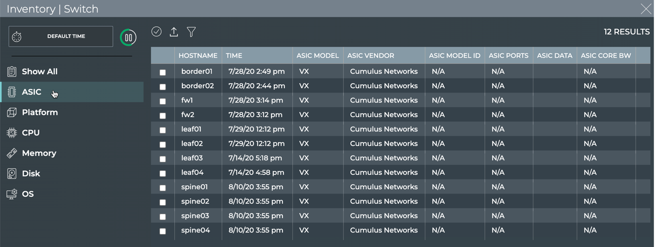 With the NetQ UI and NetQ CLI, you can monitor your inventory of switches across the network or individually. A user can monitor such items as operating system, motherboard, ASIC, microprocessor, disk, memory, fan and power supply information. Being able to monitor this inventory aids in upgrades, compliance, and other planning tasks.