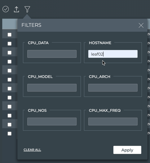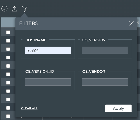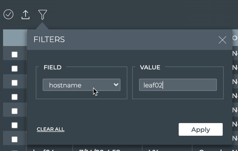 Select hostname from the Field dropdown. Then enter the hostname of the switch you want to view.