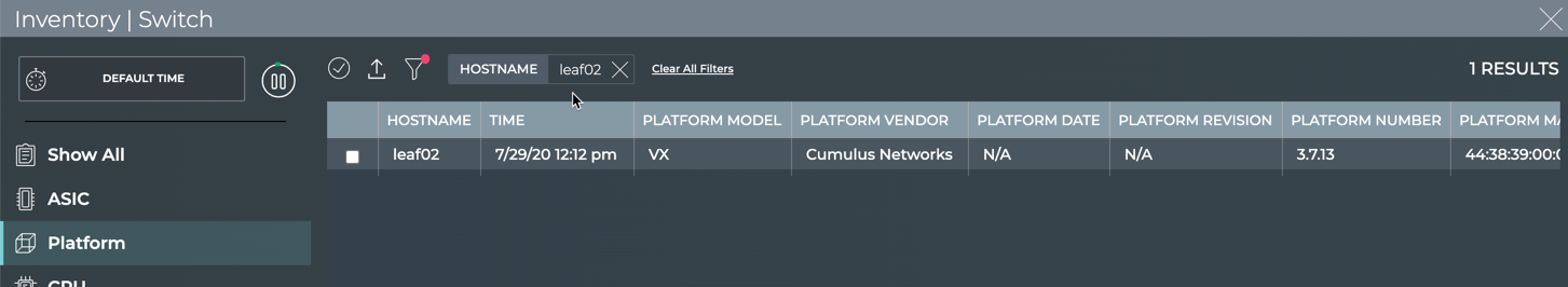 Motherboard/platform information is available from the NetQ UI and NetQ CLI.