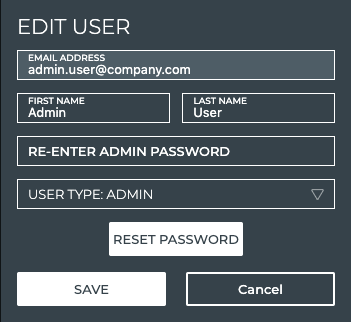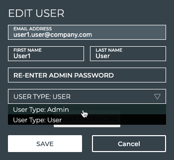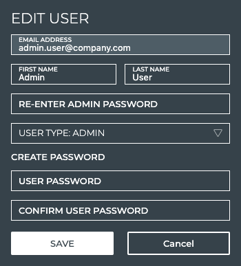 Re-enter the user password. Tip: If the password you enter does not match, Save is gray (not activated).