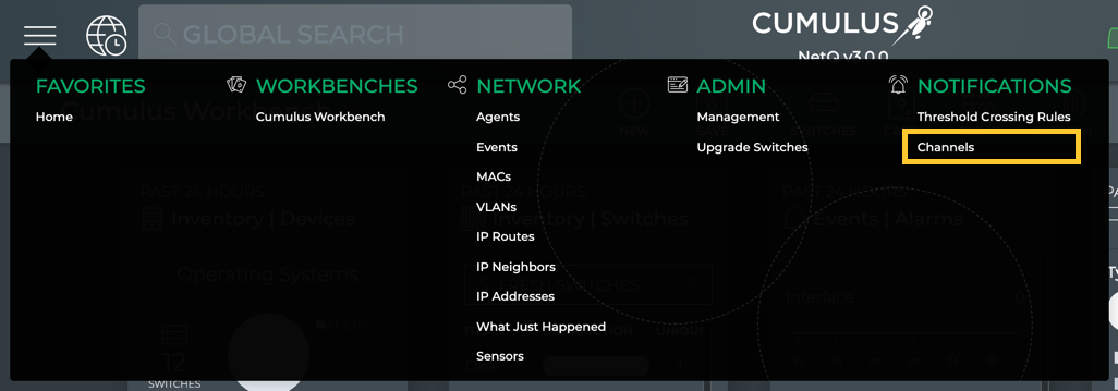 You access the NetQ Management workbench from the main menu. For users responsible for maintaining the application, this is a good place to start each day.