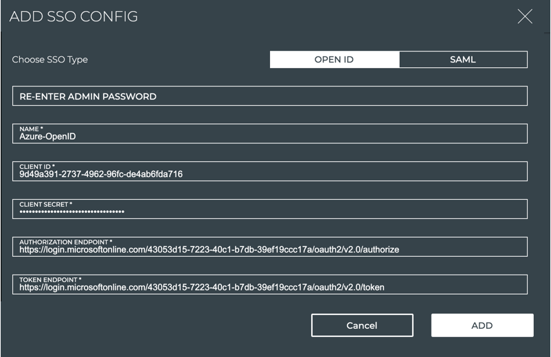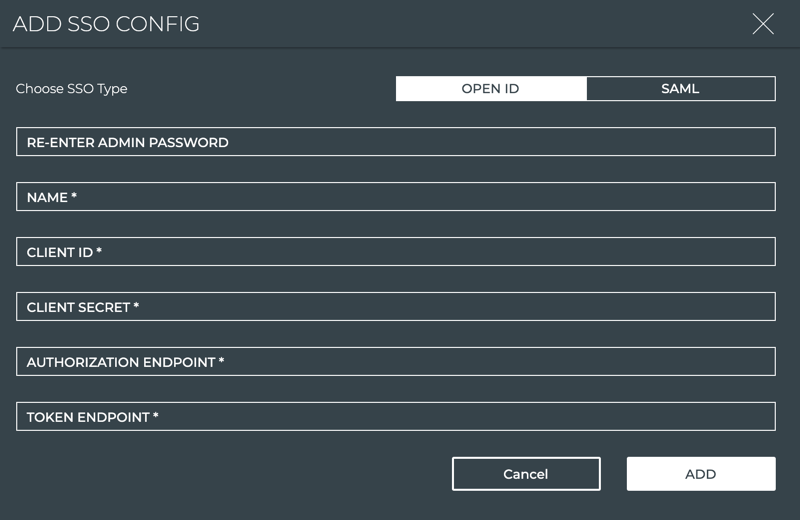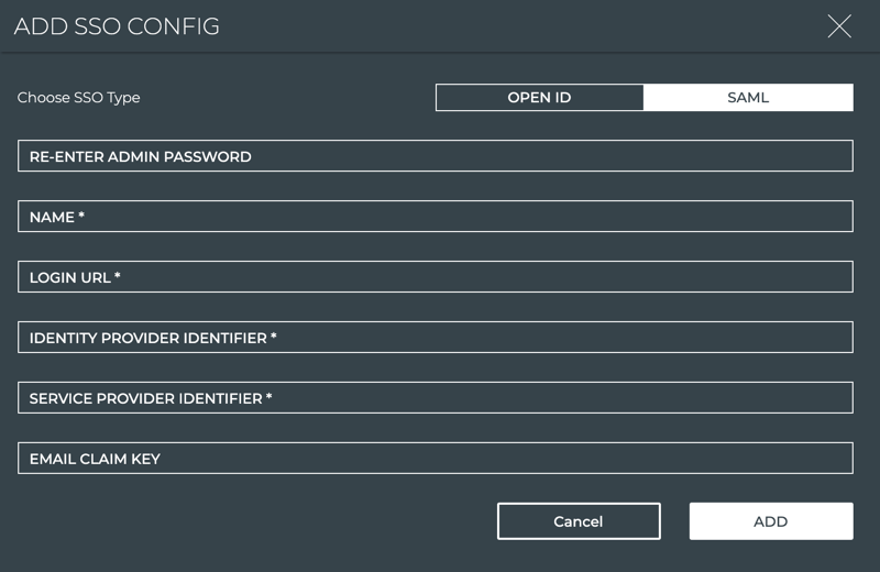 Select the desired SSO type and complete the form with the relevant data for that SSO type.