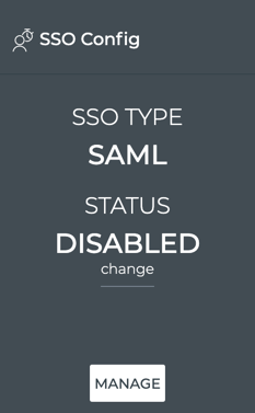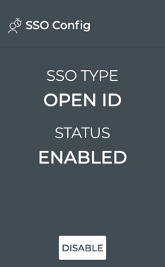 Click Close. The SSO Config card reflects the configuration.