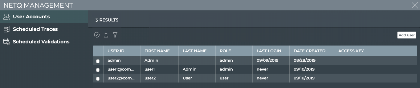 NetQ application administrators should remove user accounts associated with users that are no longer using the application.