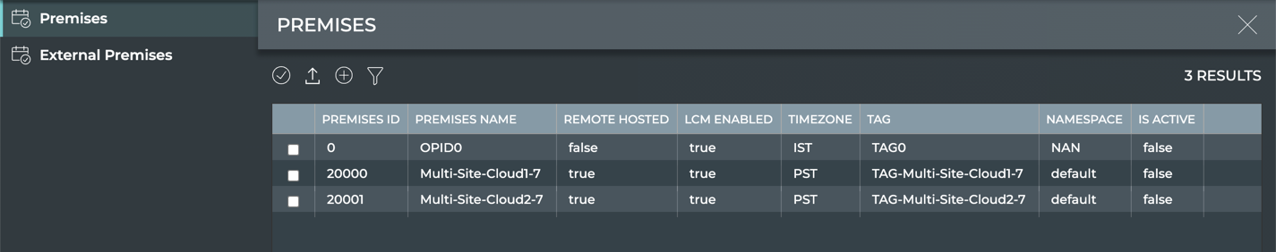 After the multiple premises are configured, you can view this list of premises in the NetQ UI at the primary premises, change the name of premises on the list, and delete premises from the list.