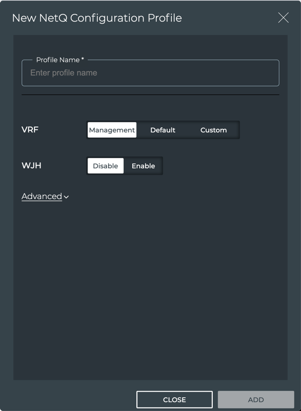 Accept the VRF selection of Management, or optionally change it to Default. Note that changing the VRF might cause some agents to become unresponsive.