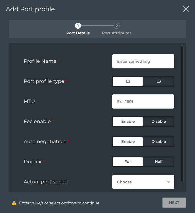Click Continue to port details, or click Save and Exit to come back later to finish the specification. If you choose to save and exit, click