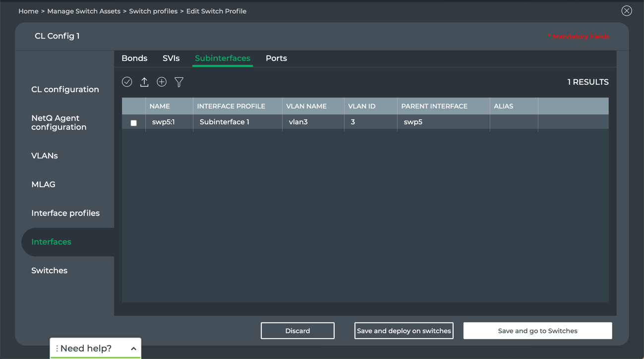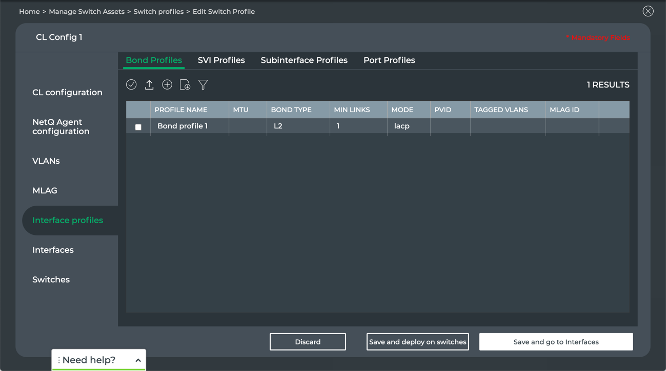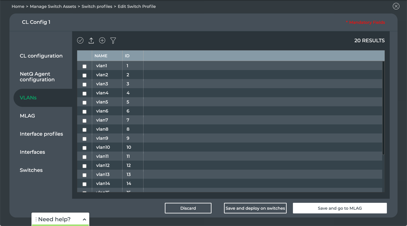 If you need to create a new switch configuration, follow the instructions in Create Switch Configuration Profiles.