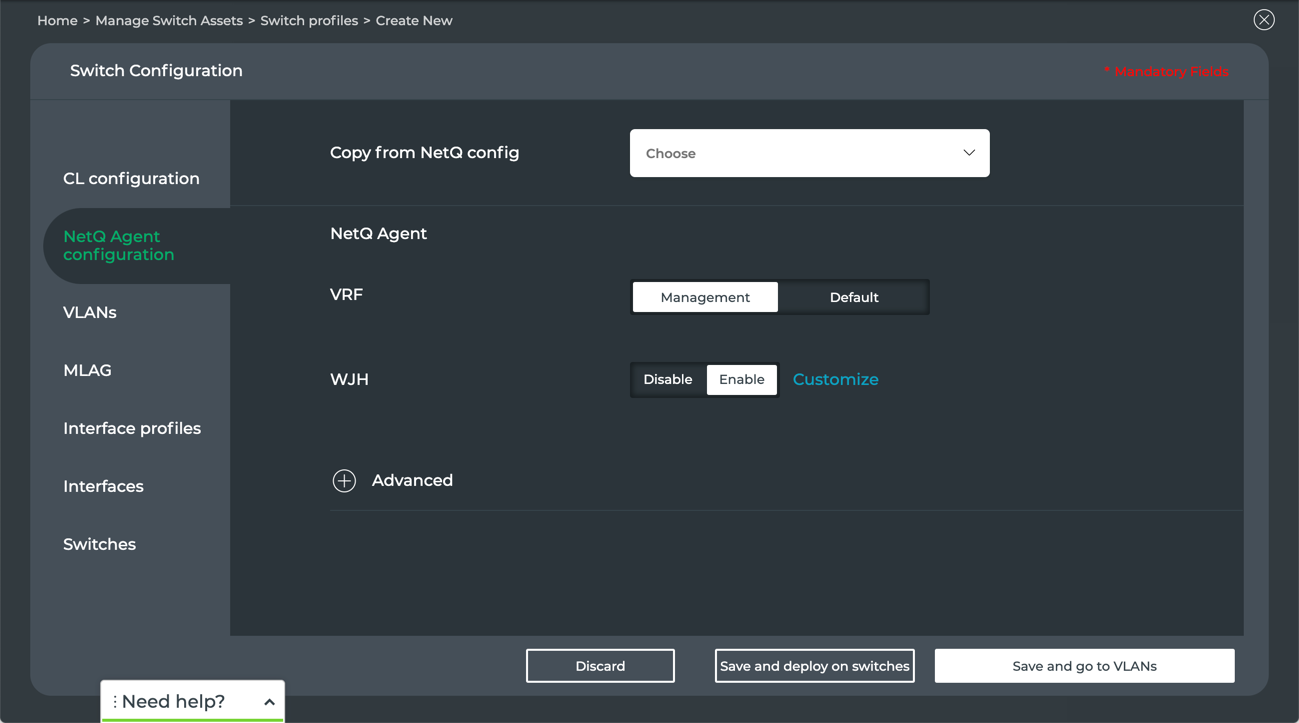 You can change the switch configuration assignment at any time. For example you might have a switch that is starting to experience reduced performance, so you want to run What Just Happened on it to see if there is a particular problem area. You can reassign this switch to a new configuration with WJH enabled on the NetQ Agent while you test it. Then you can change it back to its original assignment.