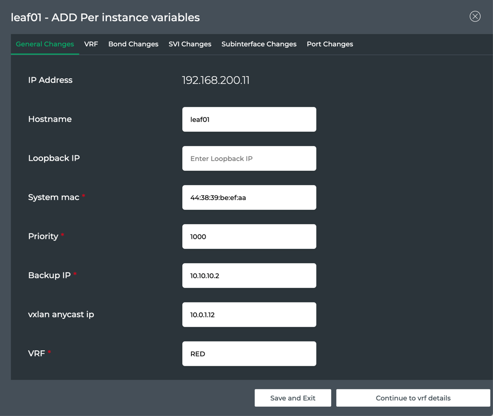 Either way, a per-instance variables form appears for the selected or one of the selected switches.