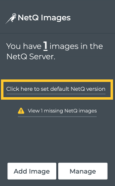 On the NetQ Images card, click the View # missing NetQ images link to see what images you need. This opens the list of missing images.
