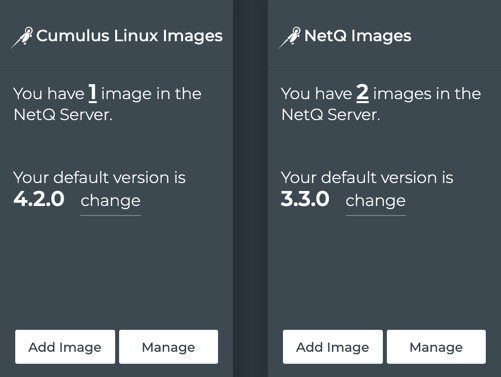Click Manage on the Cumulus Linux Images or NetQ Images card.