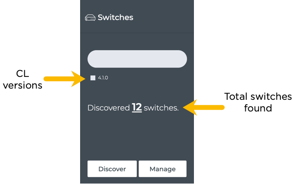 To view a list of all switches known to lifecycle management, click Manage on the Switches card.