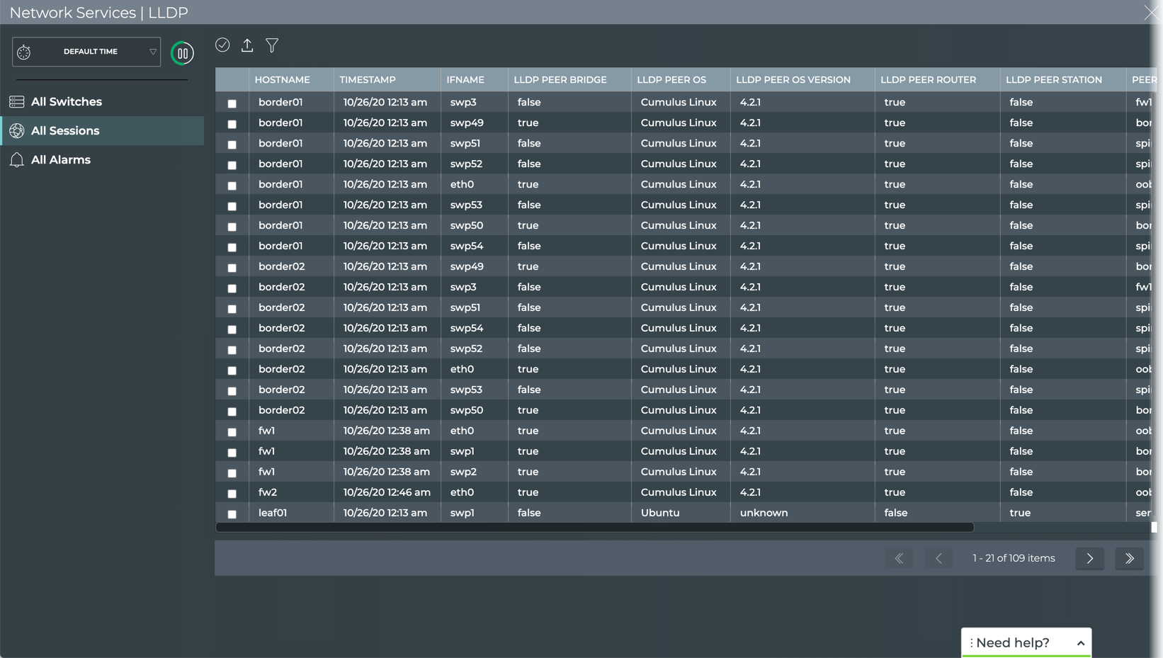 - Click Show All Sessions to investigate all MLAG sessions with alarms in the full-screen card.
