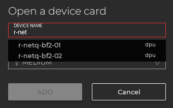 - Begin typing the hotsname of the DPU you would like to view. Select it from the suggested matches when it appears.