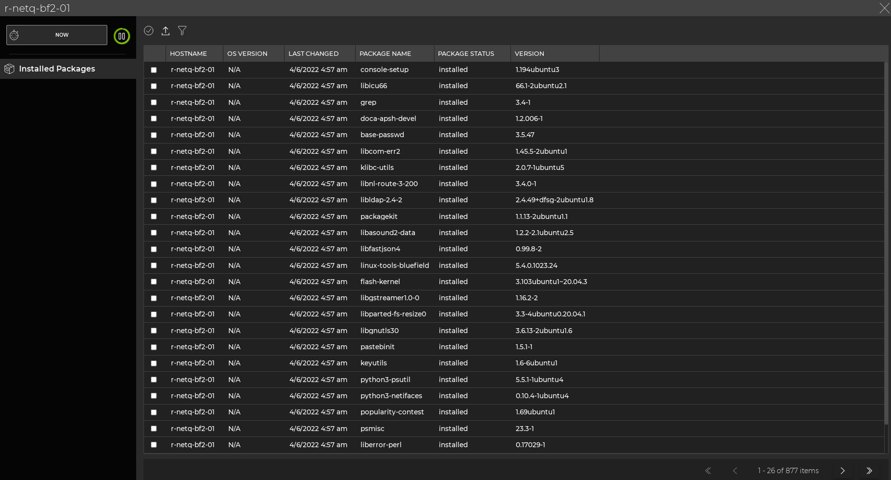 To view the list of installed packages on a particular DPU, open the large DPU card using the card size picker.