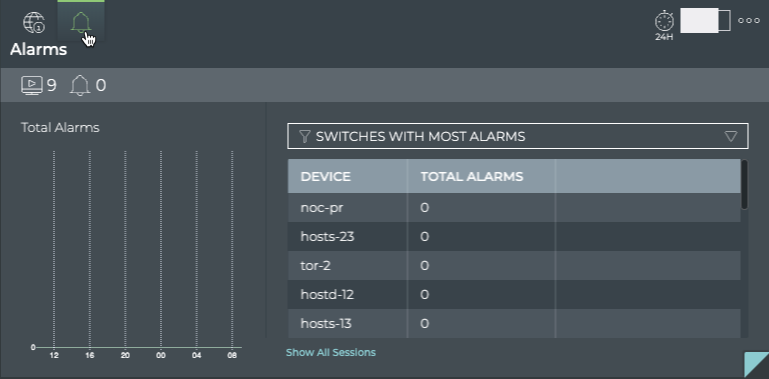 • Full-screen: view and filter configuration and status for all switches, all sessions, and all alarms