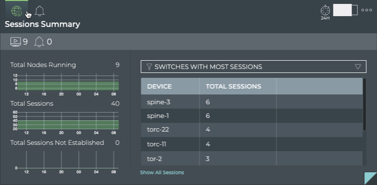 If the same switches are consistently indicating the most unestablished sessions, you might want to look more carefully at those switches using the Switches card workflow to determine probable causes. Refer to Monitor Switch Performance.