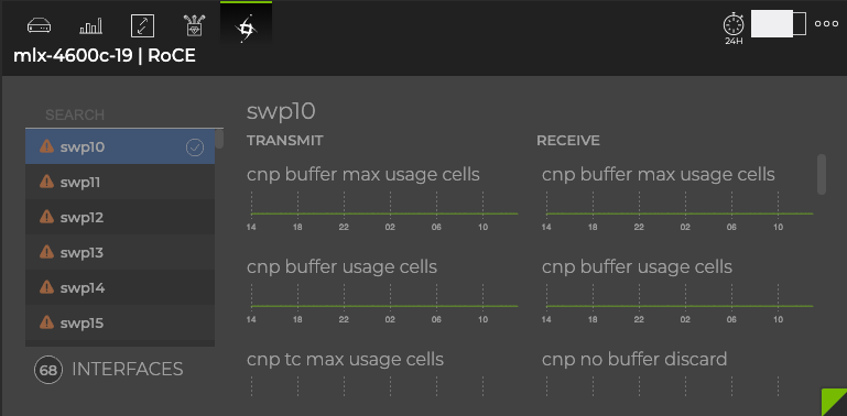 - To view Tx counters, open the large switch card, then click the RoCE icon (