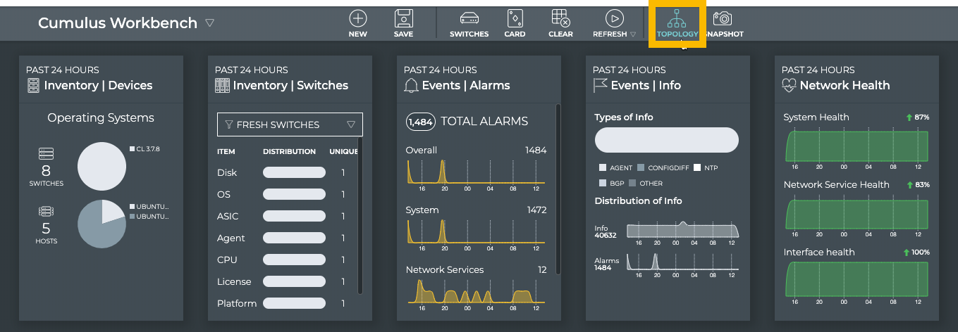 The core capabilities of NetQ enable you to monitor your network by viewing performance and configuration data about your individual network devices and the entire fabric networkwide. The topics contained in this section describe monitoring tasks you can perform from a topology view rather than through the NetQ UI card workflows or the NetQ CLI.