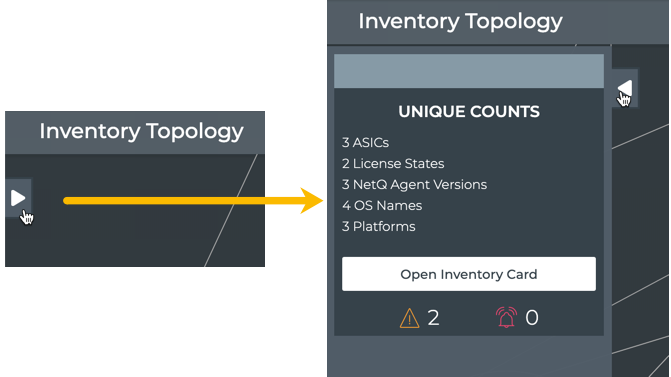 When no devices or links are selected, you can view the unique count of items in the network by clicking on the on the upper left to open the count summary. Click
