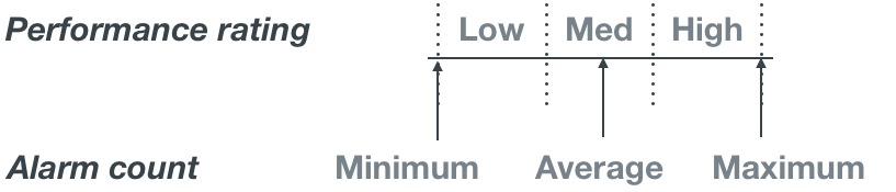 | Alarm rating | Count of alarms relative to the average count of alarms during the designated time period: